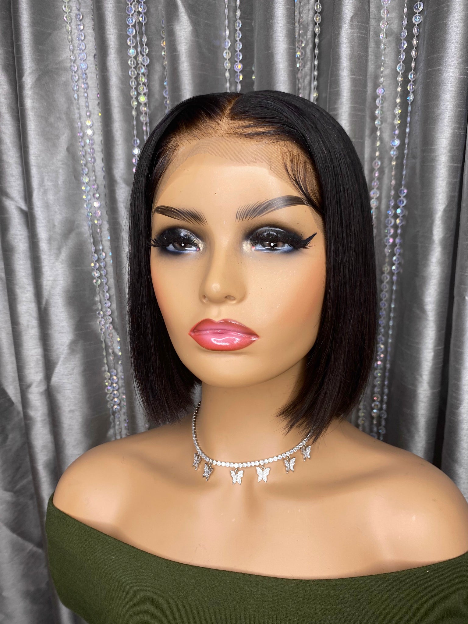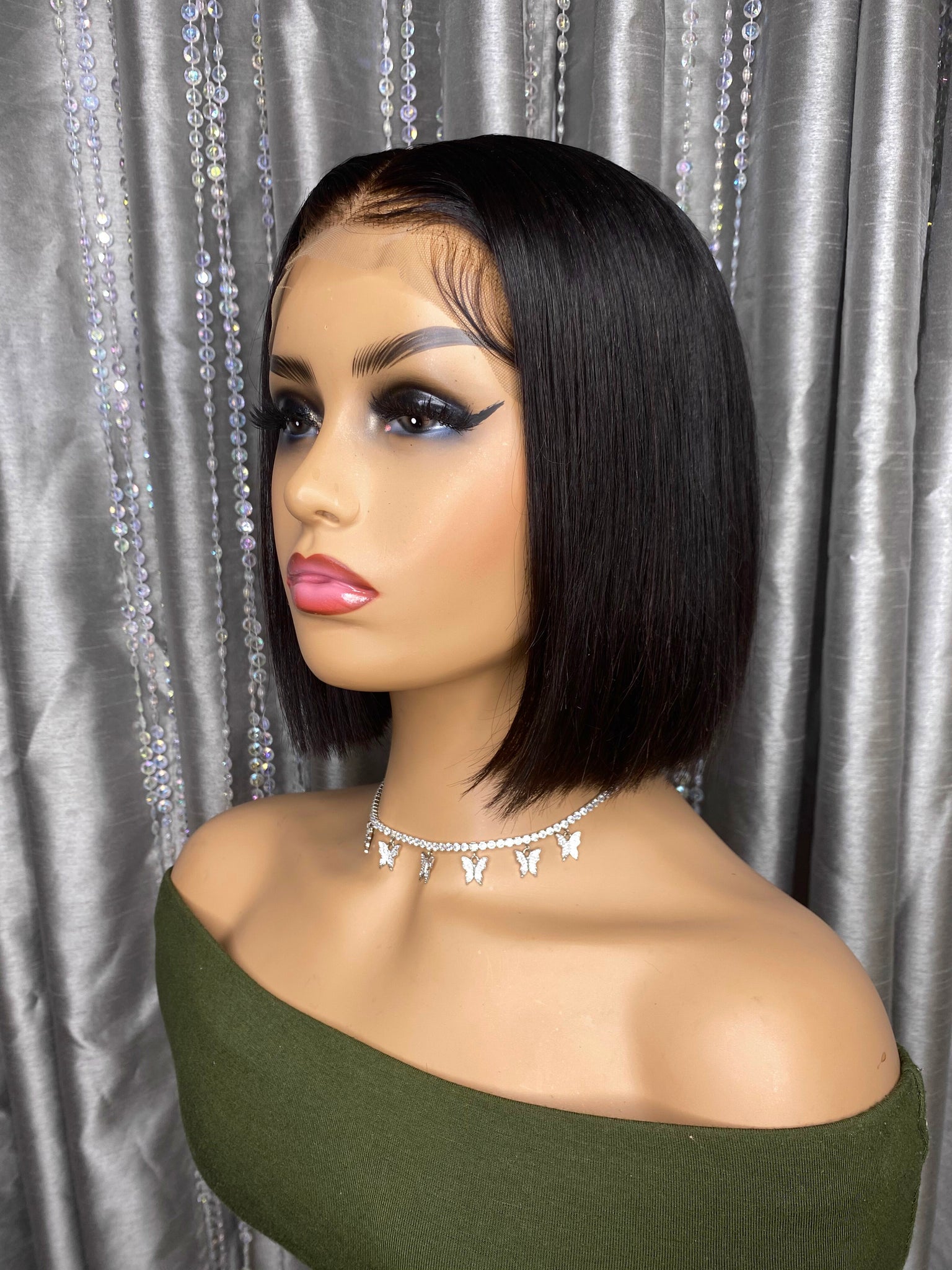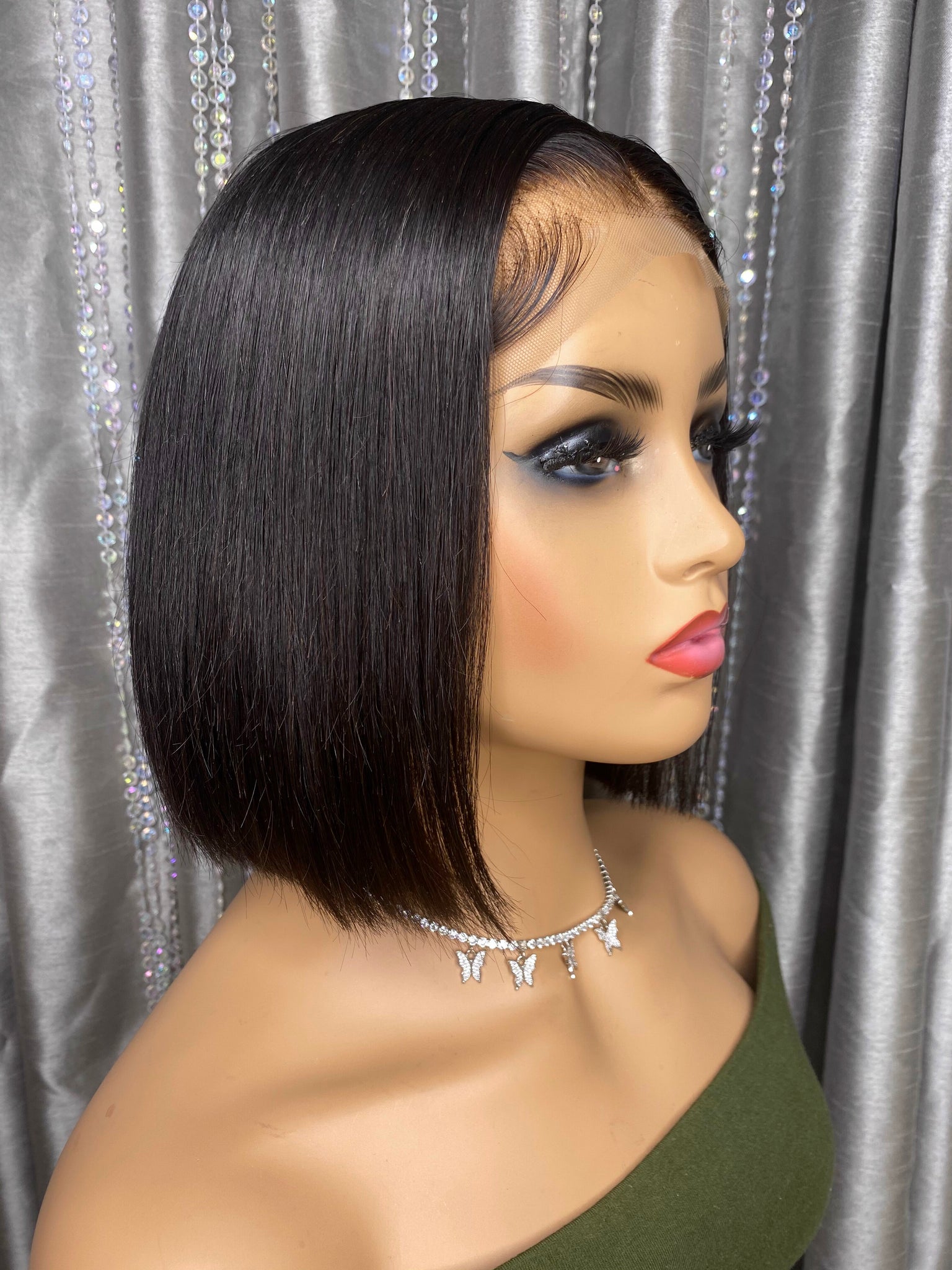 Natural Black 13X4 Undetectable HD lace Wig Straight bob Wig.